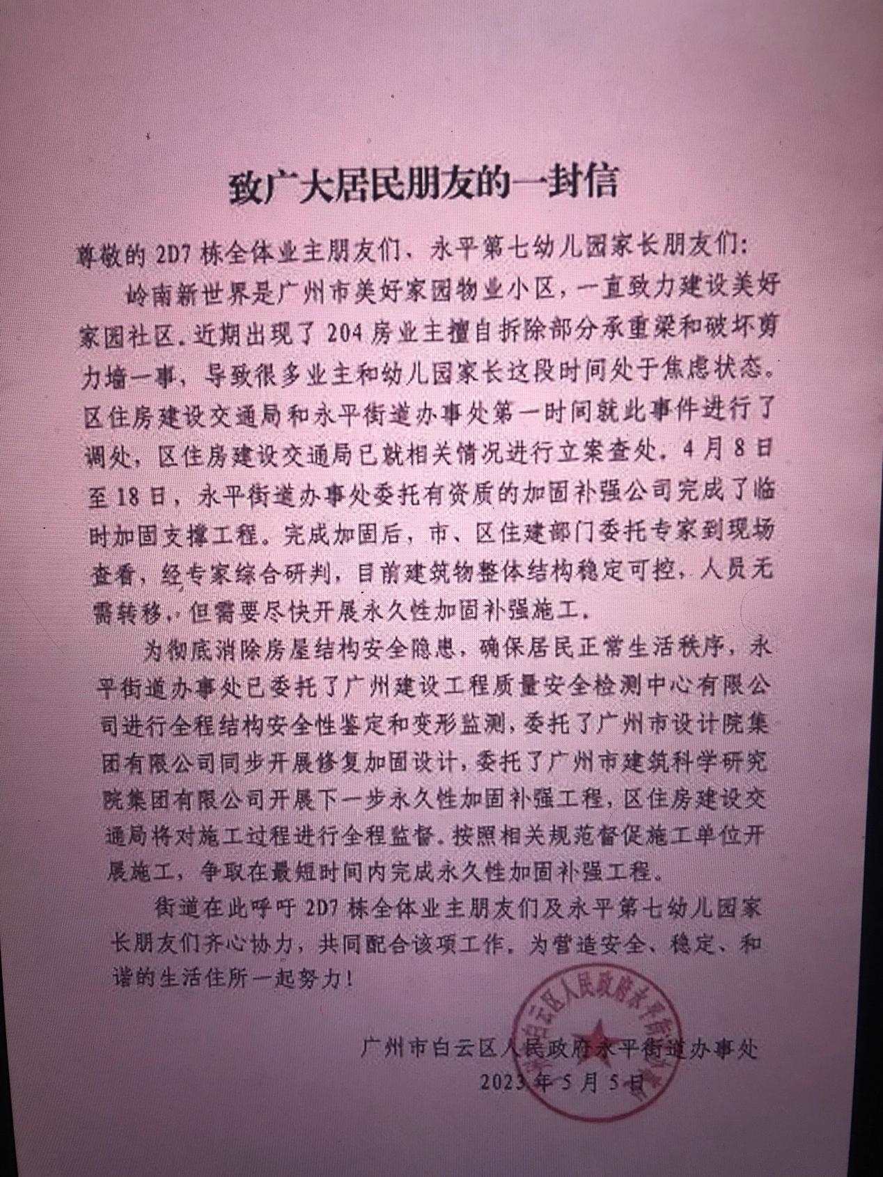 ·“廣州一租戶私拆承重墻”追蹤:已臨時(shí)加固,業(yè)主擬聯(lián)合起訴。