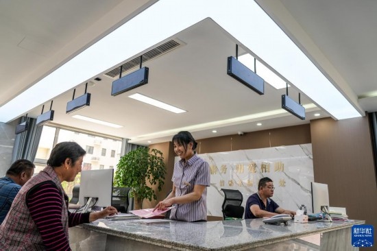 5月12日,北汝村居民在小區(qū)服務(wù)中心內(nèi)咨詢信息。