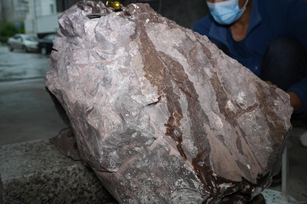 圖為工作人員正在研究恐龍蛋化石。(受訪者供圖)