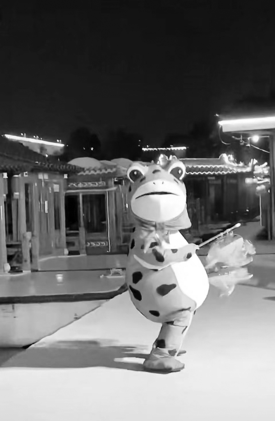 童女士也曾在大街上遇到過其他人裝扮的“網(wǎng)紅青蛙”,她認為,全國每一個青蛙玩偶服下都有一顆獨一無二的有趣靈魂,“大家都在一起制造快樂”。