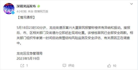 ·官方回應(yīng)深圳一大廈異響振動(dòng):已疏散居民,啟動(dòng)監(jiān)測(cè)評(píng)估。