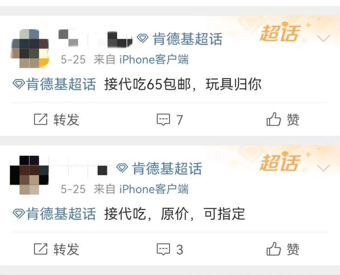 肯德基超話里有很多人在接“代吃”服務。