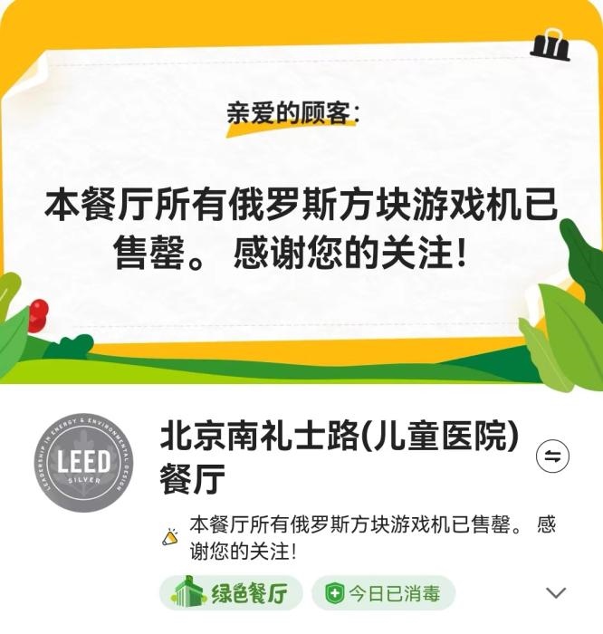 據(jù)麥當勞介紹,活動期內(nèi)下單購買任意產(chǎn)品,額外加30元即可獲得俄羅斯方塊游戲機一個,全國限量40萬個。但當日就有不少人表示,已經(jīng)買不到麥當勞游戲機。記者25日登錄麥當勞APP,北京多個門店亦顯示俄羅斯方塊游戲機已售罄。