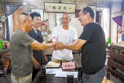 考慮鄉(xiāng)里鄉(xiāng)親,雙方都不愿對簿公堂,但又涉及合同履行中是否存在瑕疵交付的法律問題,老邵迅速將情況反饋給共享法庭。為盡快化解矛盾,當(dāng)天下午,法官趕到現(xiàn)場指導(dǎo)人民調(diào)解員,并與茶館的鄉(xiāng)賢一同開展調(diào)解。經(jīng)過法官的普法、調(diào)解員的說理,雙方厘清各自責(zé)任之后,達(dá)成調(diào)解協(xié)議。在茶館輕松和諧的氛圍里,兩個老朋友解開心結(jié),握手言和。