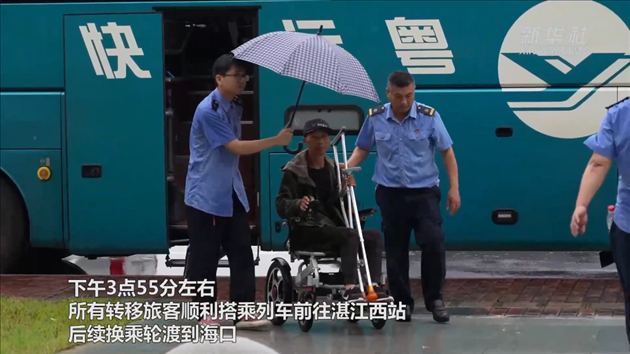 下午3點(diǎn)55分左右,所有轉(zhuǎn)移旅客順利搭乘列車離開前往湛江西站,后續(xù)換乘輪渡到???。