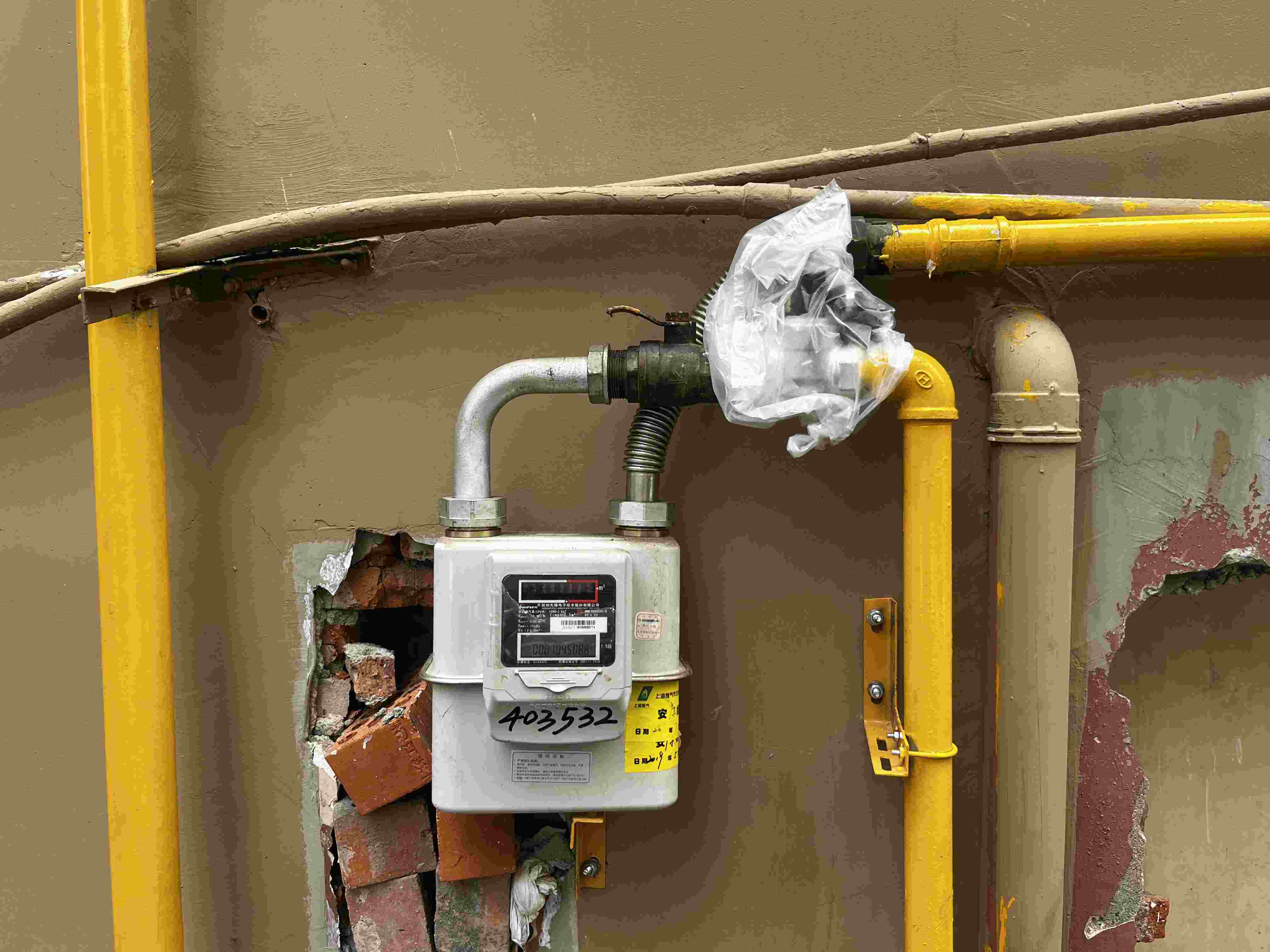 被移到室外的天然氣表