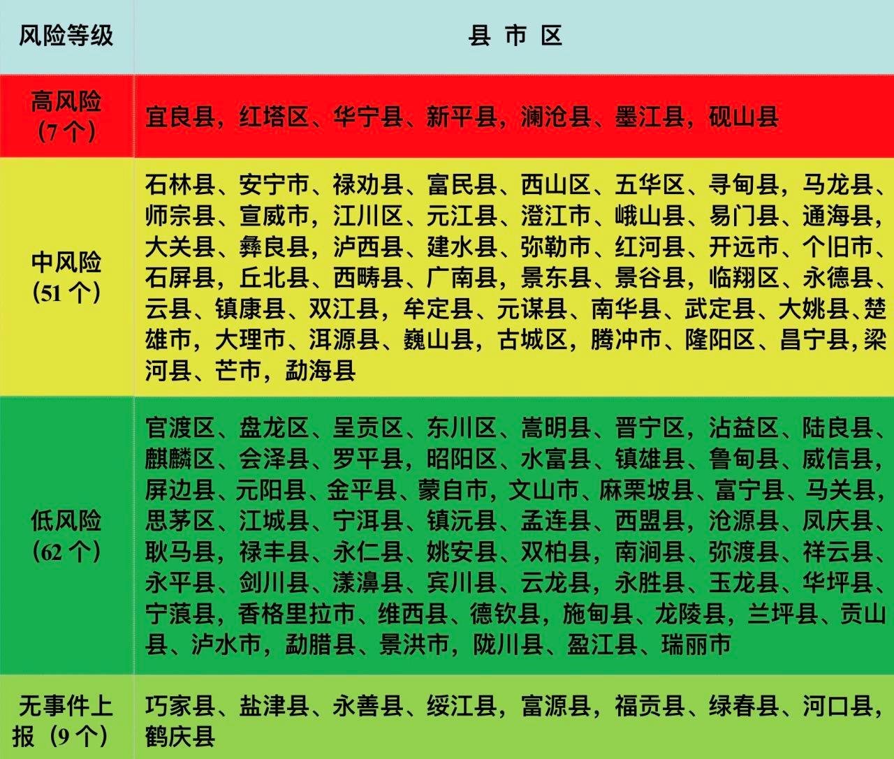 為切實維護廣大人民群眾身體健康和生命健康,有效減少有毒野生菌中毒事件發(fā)生,云南省依據(jù)2020—2022年全省野生菌中毒數(shù)據(jù)并結(jié)合各地有毒野生菌種類(重點關(guān)注中毒致死的野生菌亞稀褶紅菇,劇毒鵝膏類等),將云南所轄129個縣(市、區(qū))野生菌中毒風險分為高、中、低三個等級,累計中毒事件起數(shù)≥100起或死亡人數(shù)≥3人的地區(qū)劃定為高風險地區(qū),累計中毒事件起數(shù)為30—99起或死亡人數(shù)為1—2人的地區(qū)劃定為中風險地區(qū),累計中毒事件起數(shù)<30起且無死亡的地區(qū)劃定為低風險地區(qū),繪制了《2023年云南省有毒野生菌中毒風險分級地圖》《2023年云南省有毒野生菌中毒風險分級表》。