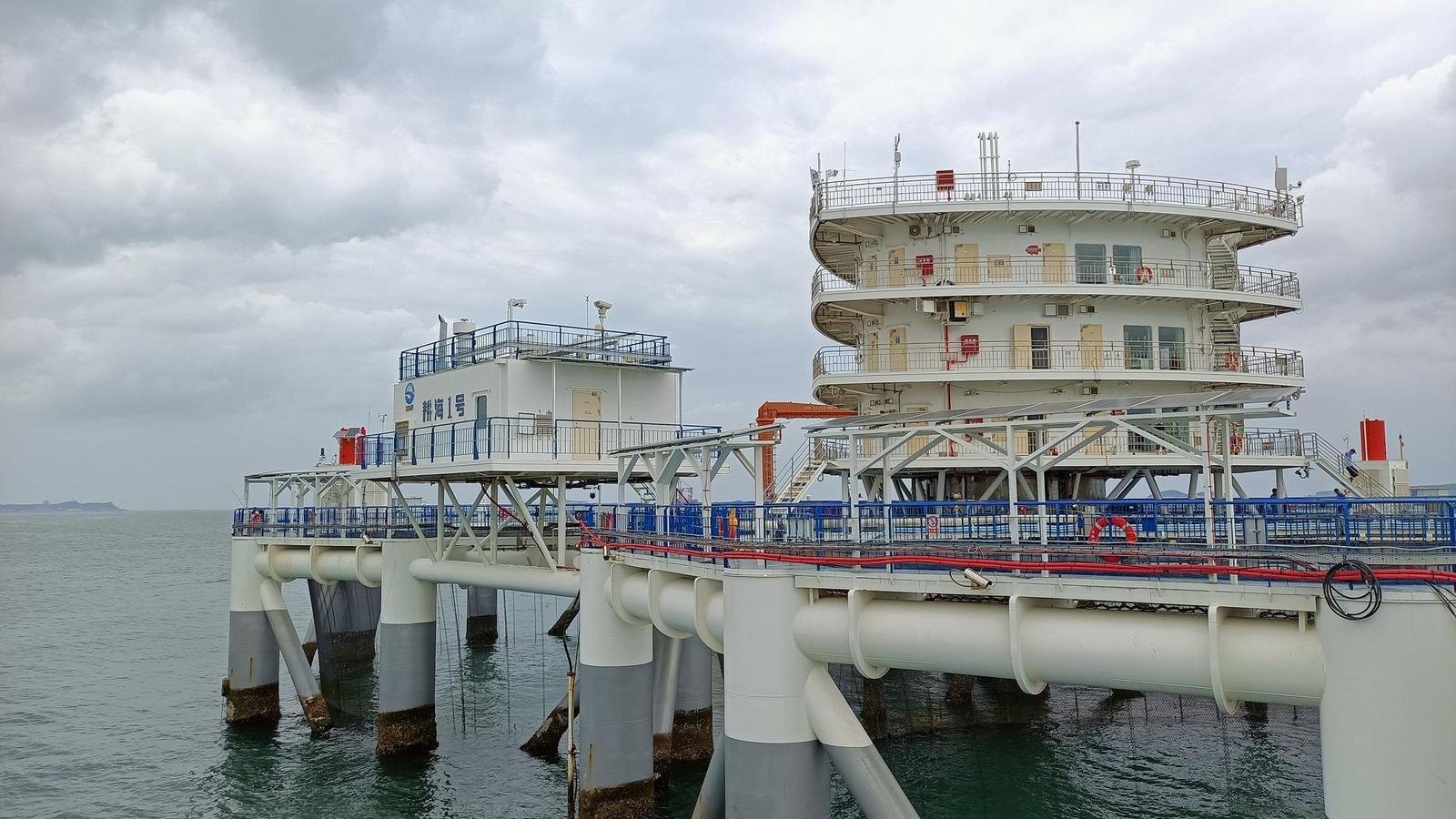 在山東省煙臺市萊山區(qū)漁人碼頭以東四十里灣海域,“耕海1號”像是一條正在遨游的魚,魚頭是包括海洋科普館、水樂園等在內(nèi)的主體平臺,魚尾由3個直徑40米的圓形子網(wǎng)箱組成,網(wǎng)箱里養(yǎng)殖著斑石鯛、紅鰭東方鲀等優(yōu)質(zhì)海水魚。7月29日,在“高質(zhì)量發(fā)展調(diào)研行”山東主題采訪活動中,山東海洋集團耕??萍伎偨?jīng)理尉巖說,“耕海1號”依托5G技術(shù)等,以科技創(chuàng)新提升漁業(yè)養(yǎng)殖效率,并將智慧漁業(yè)、科技研發(fā)、科普教育等功能有機結(jié)合起來,探索海洋牧場多元融合發(fā)展新模式。
