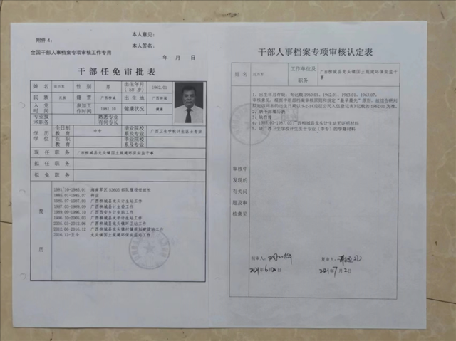 劉萬軍:舉報過,但柳城縣紀(jì)檢部門之前一直沒有受理,說不屬于他們管。后來,我把這件事反映給媒體,當(dāng)時媒體記者將我的材料向柳州紀(jì)檢部門反映以后,今年7月12號,我又交了舉報材料,他們才同意受理,但是沒有給我出具回執(zhí)。(劉萬軍提供的與柳城縣紀(jì)委信訪室通話錄音內(nèi)容顯示,紀(jì)委已受理其舉報的“個人檔案丟失”一事。)