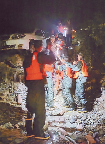 因暴雨引發(fā)山體滑坡,北京市門頭溝區(qū)妙峰山鎮(zhèn)水峪嘴村大量房屋被沖垮。武警北京總隊(duì)機(jī)動(dòng)某支隊(duì)分散摸排村莊、搜救傷員。經(jīng)過22個(gè)小時(shí)持續(xù)奮戰(zhàn),轉(zhuǎn)移受災(zāi)村民107人,轉(zhuǎn)運(yùn)村民物資財(cái)產(chǎn)1100余件。