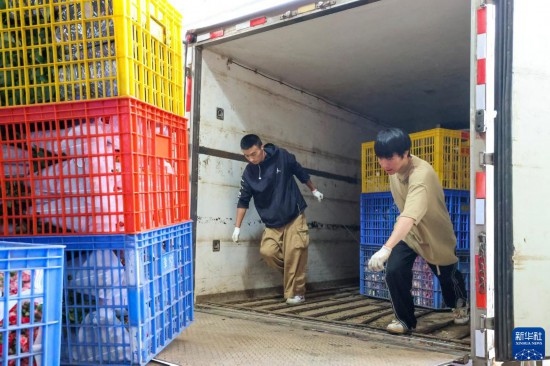 一名花商在昆明國際花卉拍賣交易中心外準(zhǔn)備將拍得的鮮花裝車運走(7月13日攝)。新華社記者 陳欣波 攝
