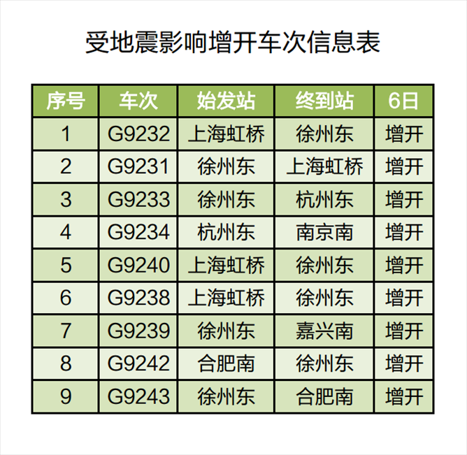 后續(xù),鐵路部門將密切關(guān)注地震影響區(qū)段高鐵恢復(fù)運(yùn)行和旅客出行需要等情況,適時(shí)采取停運(yùn)、加開、恢復(fù)開行等措施,動(dòng)態(tài)調(diào)整列車開行方案,確保旅客安全出行需要。具體列車開行信息請關(guān)注車站公告或致電鐵路12306客服熱線查詢,以便妥善安排行程。