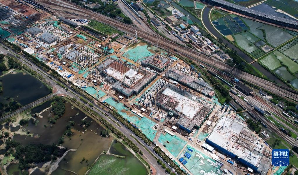 ??谛潞8酆湍细邸岸€口岸”(貨運)集中查驗場所建設(shè)項目(7月21日攝,無人機(jī)照片)。