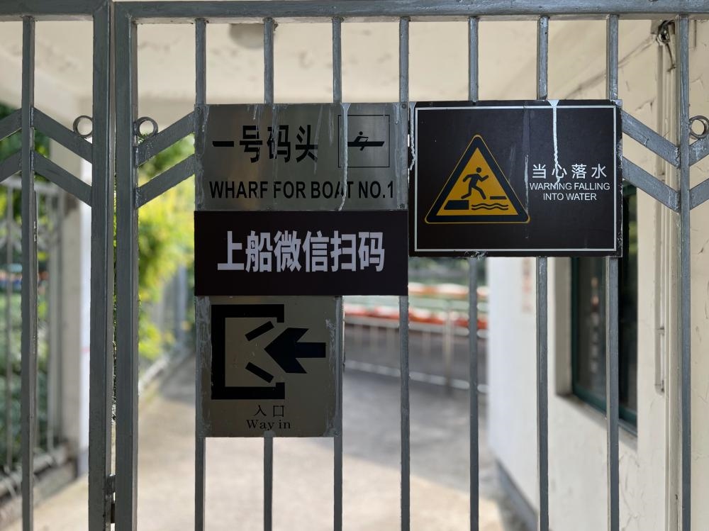 當(dāng)日下雨,乘坐游船的游客并不多,在工作人員的指導(dǎo)下都順利完成了購票。可是,在人流量較大的晴天,不會使用電子支付的老人是否能得到及時的輔助?現(xiàn)金售票亭長時間無人在崗的情況下,市民又是否能使用現(xiàn)金購票呢?目前,碼頭工作人員給出了“我沒辦法收現(xiàn)金,要等售票員回到售票亭”的答復(fù)。