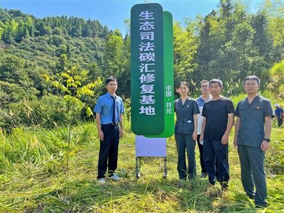 衢州市首個(gè)生態(tài)司法碳匯修復(fù)基地在開(kāi)化縣揭牌。徐晰玙 攝