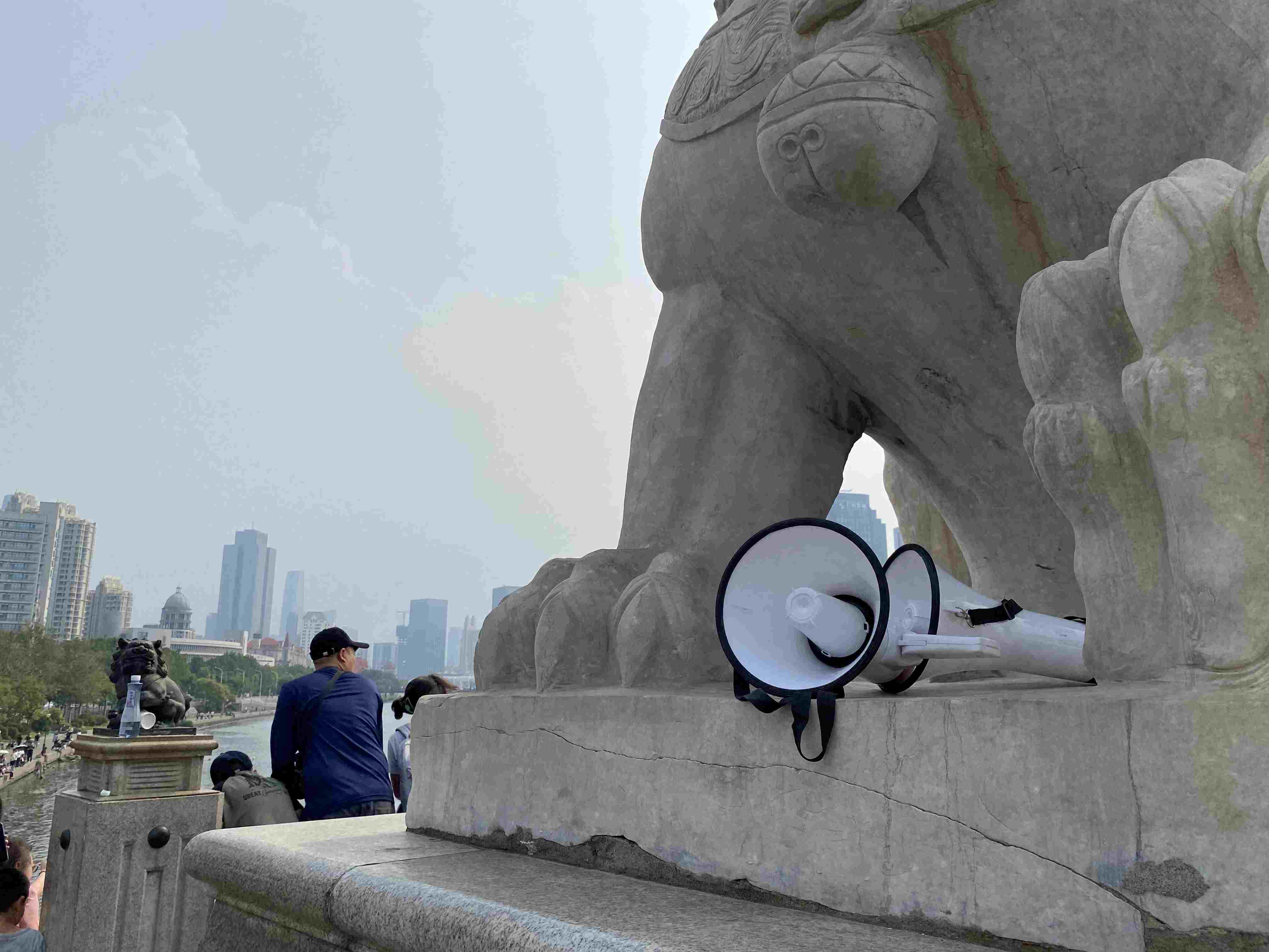 ▲獅子林橋橋頭循環(huán)播放勸阻大家不要跳水的喇叭