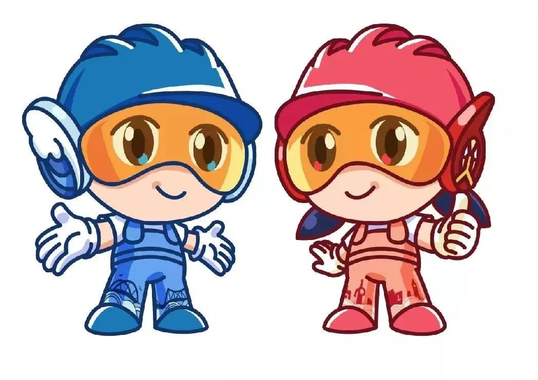 本屆大賽的吉祥物為“天天、津津”,形象為“一男、一女”兩個青年人物的造型,具有青春、活力、向上的鮮明特點,色彩以藍(lán)色、紅色為主色調(diào),突出“技能藍(lán)、青春紅”,與大賽會標(biāo)“技”字標(biāo)識相呼應(yīng);服飾上通過統(tǒng)一的工裝服、安全帽、護(hù)目鏡、藍(lán)牙耳機等外形設(shè)計,形象鮮明地展現(xiàn)新時代技能人才的外表特征;通過人物專注自信的表情和張開雙臂、舉手點贊等形態(tài),凸顯了技能人才“力爭上游、奮勇拼搏”的精神面貌和天津人民“自信包容、樂觀好客”的性格特質(zhì)。同時,通過摩天輪造型耳機、特色橋梁、港口、天津新老標(biāo)志性建筑等形象設(shè)計,展現(xiàn)天津的城市元素。