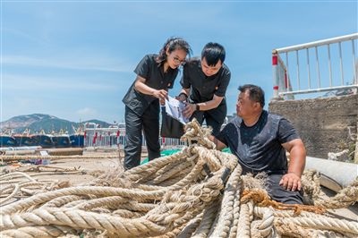 圖⑤:溫嶺市人民法院石陳人民法庭執(zhí)行干警向漁民詢問被執(zhí)行人信息。資料圖片