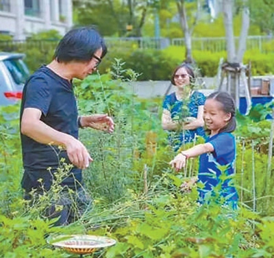 社區(qū)居民在創(chuàng)智農(nóng)園了解種植相關(guān)知識(shí)。上海四葉草堂青少年自然體驗(yàn)服務(wù)中心供圖