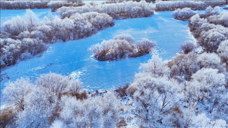 黑龍江大興安嶺現霧凇景觀,銀枝玉掛千姿百媚。