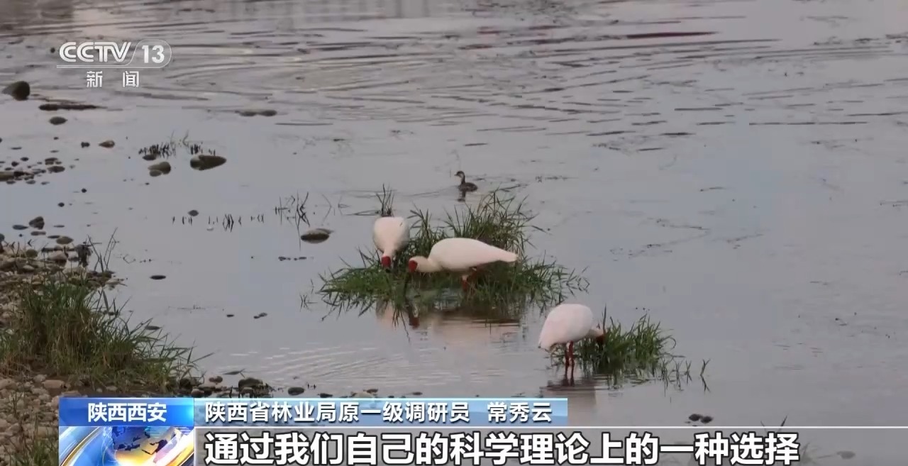 陜西漢中朱鹮國家級自然保護(hù)區(qū)管理局原副局長 路寶忠:1990年開始,我們陜西啟動了朱鹮拯救工程,加強(qiáng)野外朱鹮種群的保護(hù)。這里面天敵的防護(hù),把樹干裹起來,然后涂上黃油,蛇爬不上去。然后朱鹮覓食地、棲息地環(huán)境改善,發(fā)動群眾、農(nóng)民來落實承包(保護(hù))責(zé)任制,這樣對野外種群有一個全方位的保護(hù),減少或者盡可能避免天敵對朱鹮的危害。
