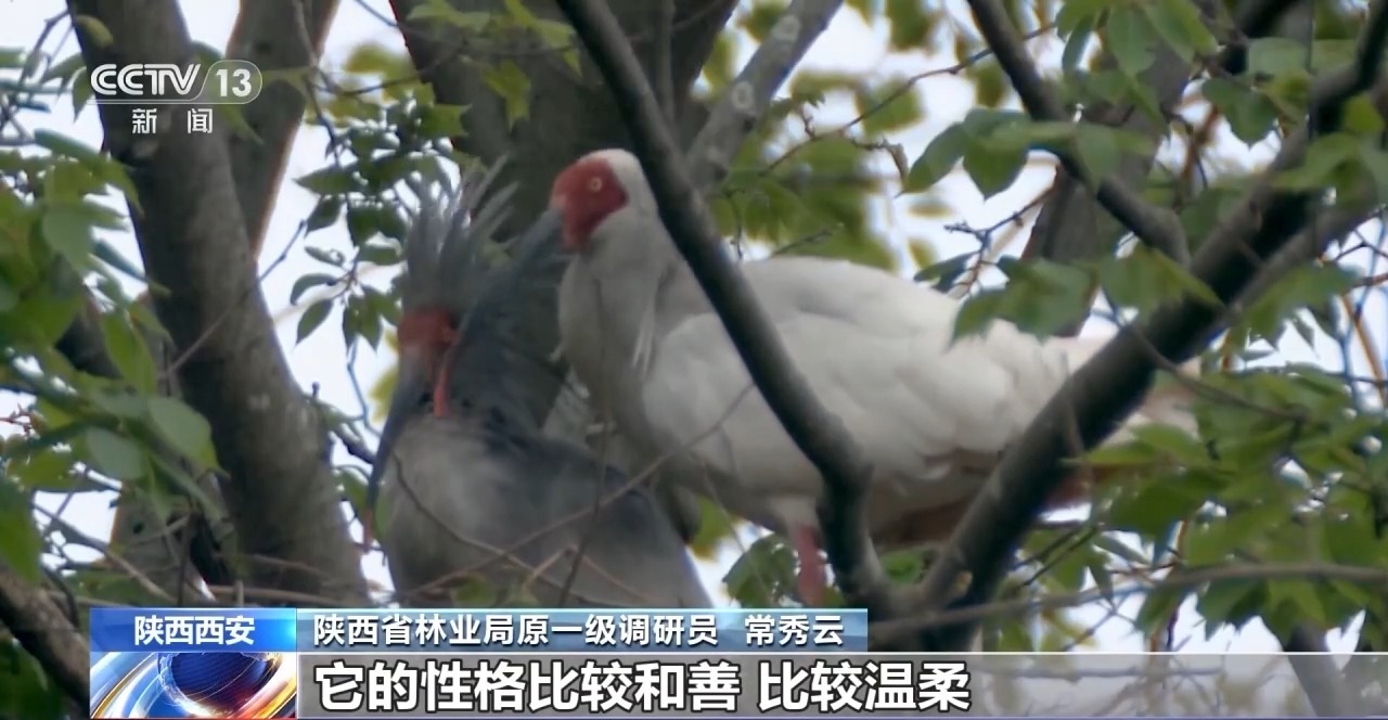陜西省林業(yè)局原一級調(diào)研員 常秀云:它的性格比較和善,比較溫柔。它不像那些猛禽,哪怕蒼鷺和白鷺都比它要強(qiáng)壯,但是朱鹮不到萬不得已的時候,它是不會向人發(fā)出攻擊,或者向同伴鳥類發(fā)出攻擊的。所以它是一種比較溫文爾雅的鳥類。