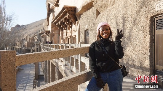 圖為萊索托留學(xué)生茉莉在敦煌莫高窟進(jìn)行參觀。受訪者供圖