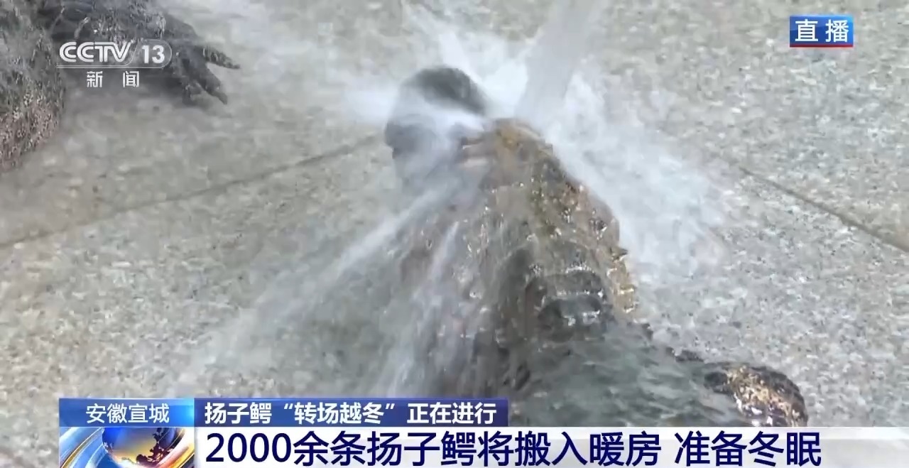 由于今年的溫度比較高,與往年相比,轉(zhuǎn)場(chǎng)越冬推遲了十天左右。轉(zhuǎn)場(chǎng)是按照從小到大的順序。今天是第一天,率先搬家的主要是7歲以下的幼鱷,它們對(duì)環(huán)境的適應(yīng)能力更弱一些,需要盡快搬進(jìn)室內(nèi)。在搬進(jìn)暖房之前,揚(yáng)子鱷需要先進(jìn)行沖洗、消毒?!鞍布摇焙螅蕉康臏囟葧?huì)保持在10℃左右,并且有工作人員定期打掃、保濕,確保揚(yáng)子鱷安全過(guò)冬。
