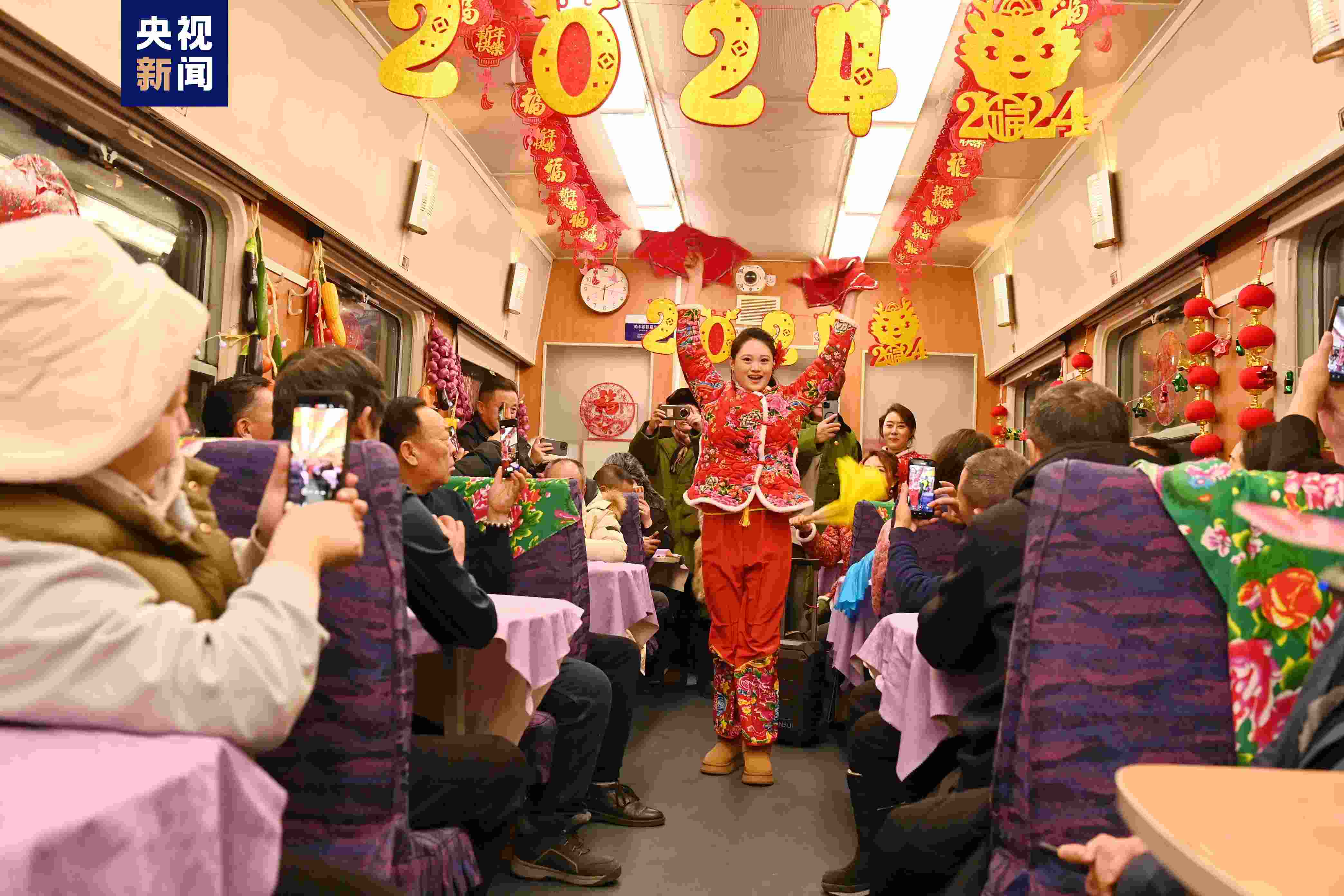 記者從中國鐵路哈爾濱局集團有限公司獲悉,首列東北民俗文化旅客列車著力呈現出有溫度、有煙火氣、可互動的主題形態(tài),更加注重氛圍營造與文化內涵提升,嘗試突出對部分臥鋪車廂、餐車進行特色定制,車廂內部裝飾包含“最北人家”“喜迎豐收”“跨年狂歡”等主題場景,加入了沉浸式互動演繹和東北農家樂元素。