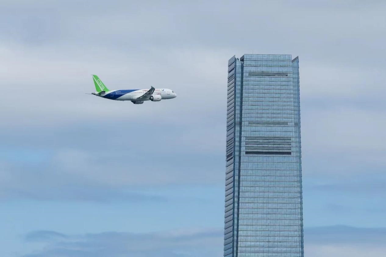 ·12月16日,國(guó)產(chǎn)大飛機(jī)C919飛越香港維多利亞港。