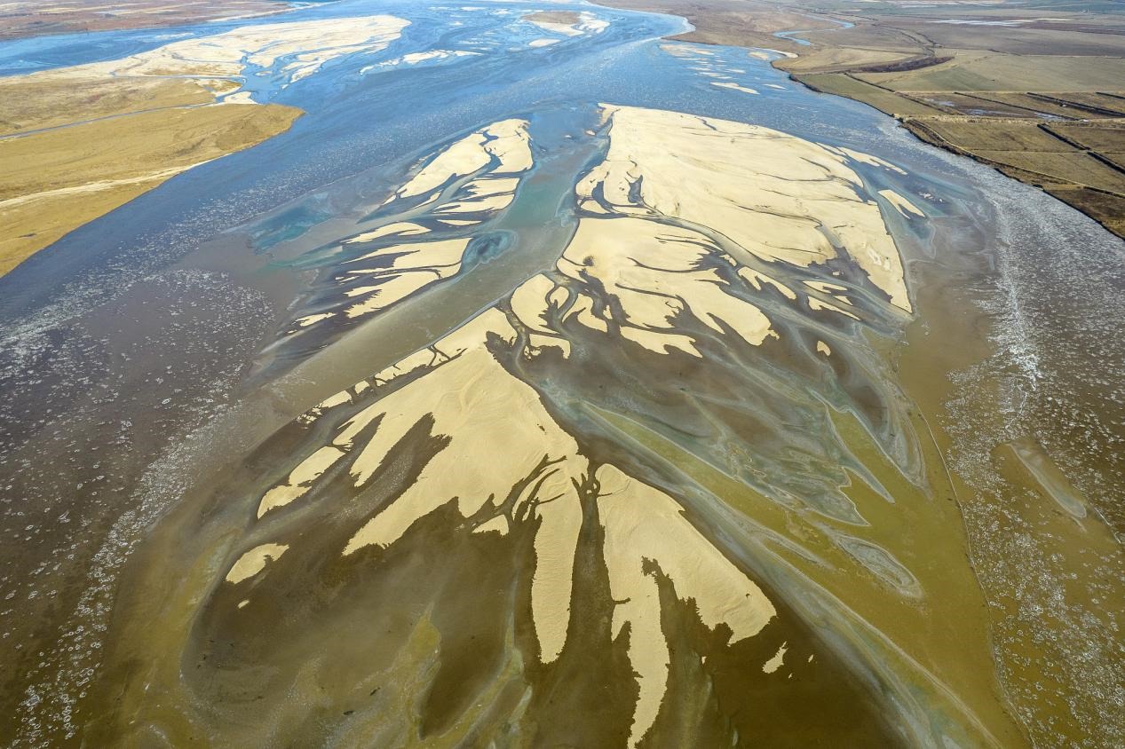 山西運(yùn)城:黃河永濟(jì)段現(xiàn)流凌,宛如白色鱗片順流而下。