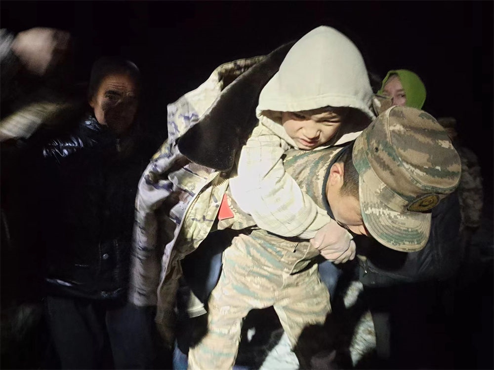 12月19日,武警甘肅總隊(duì)臨夏支隊(duì)官兵在甘肅省臨夏回族自治州積石山縣劉集鄉(xiāng)陽(yáng)屲村展開救援。新華社發(fā)(侯崇慧 攝)