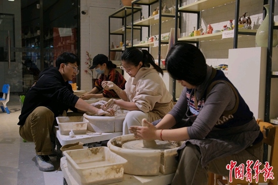 開設(shè)陶藝夜校之前,柴鑫杰在北京宋莊附近經(jīng)營著一家專業(yè)陶藝工作室。但幾個月前,工作室小院遇上了拆遷,他和朋友商量著,那就試著以夜校的模式,把陶藝搬到市區(qū),“雖然成本高,燒窯不方便,但是人多了起來,創(chuàng)造收益的機(jī)會也會多一些”。