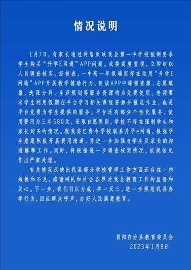 ·重慶一中學(xué)通知學(xué)生使用收費(fèi)App交作業(yè)?教委回應(yīng):非強(qiáng)制,正退費(fèi)。