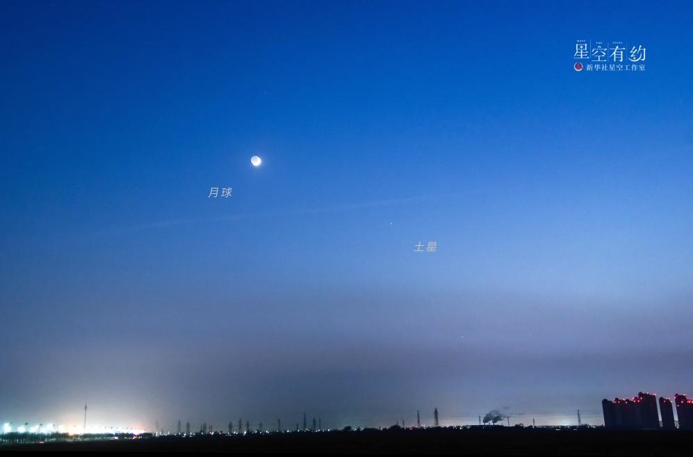 天津星空攝影愛(ài)好者楊婧2022年1月5日在天津靜海團(tuán)泊湖拍攝的土星伴月。(本人供圖)