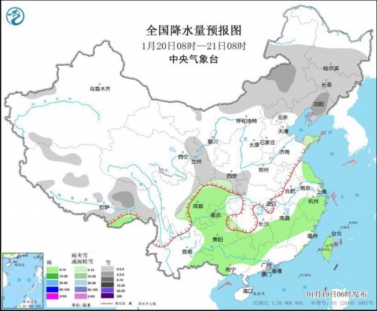 中新網(wǎng)1月19日電 據(jù)中央氣象臺(tái)網(wǎng)站消息,昨日內(nèi)蒙古、陜西、河南等地出現(xiàn)小到中雪或雨夾雪,湖南、湖北、江西等地部分地區(qū)出現(xiàn)明顯降雨。19日,內(nèi)蒙古等地有雨雪天氣,廣西、湖南、江西等地有明顯降雨,防范對(duì)交通運(yùn)輸?shù)鹊挠绊懀?0日起寒潮影響我國(guó)中東部,關(guān)注大風(fēng)降溫和雨雪天氣對(duì)交通運(yùn)輸、城市運(yùn)行和農(nóng)業(yè)生產(chǎn)等的影響。