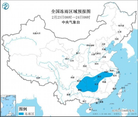 23日至25日,湖南、貴州、湖北東部和南部等地的部分地區(qū)有冰凍天氣。預(yù)計,2月23日8時至24日8時,安徽中南部、浙江西北部、湖北中東部和南部、湖南大部、江西西北部、貴州東部、重慶東南部等地的部分地區(qū)有凍雨或冰粒,凍雨量1~5毫米,局地10毫米左右。中央氣象臺2月23日6時繼續(xù)發(fā)布冰凍黃色預(yù)警。