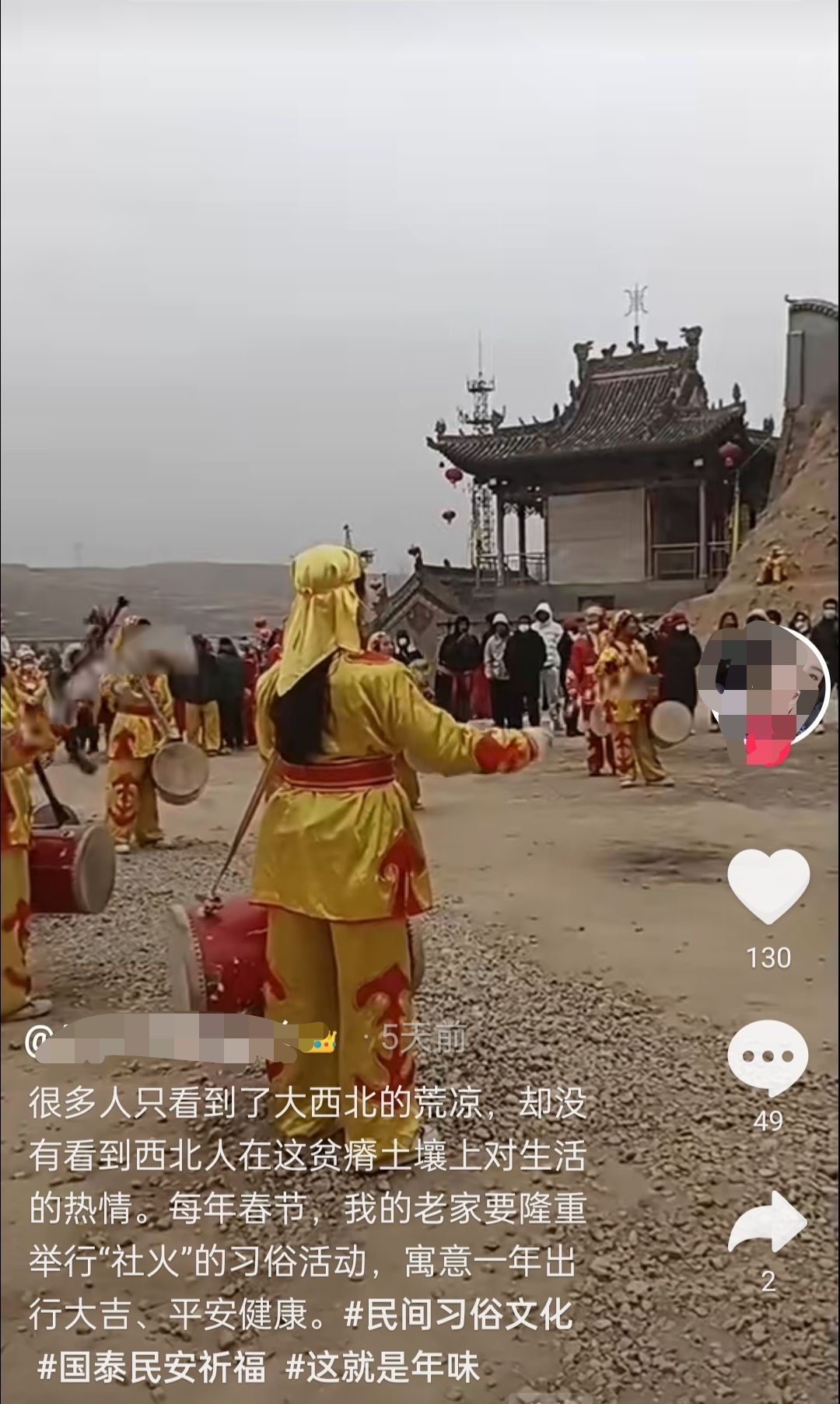 2月26日,該網(wǎng)民繼續(xù)發(fā)布配以社火表演隊(duì)伍的視頻,并配文“看到這個(gè)視頻,就特別痛心,我那受傷住院的隊(duì)友們。”