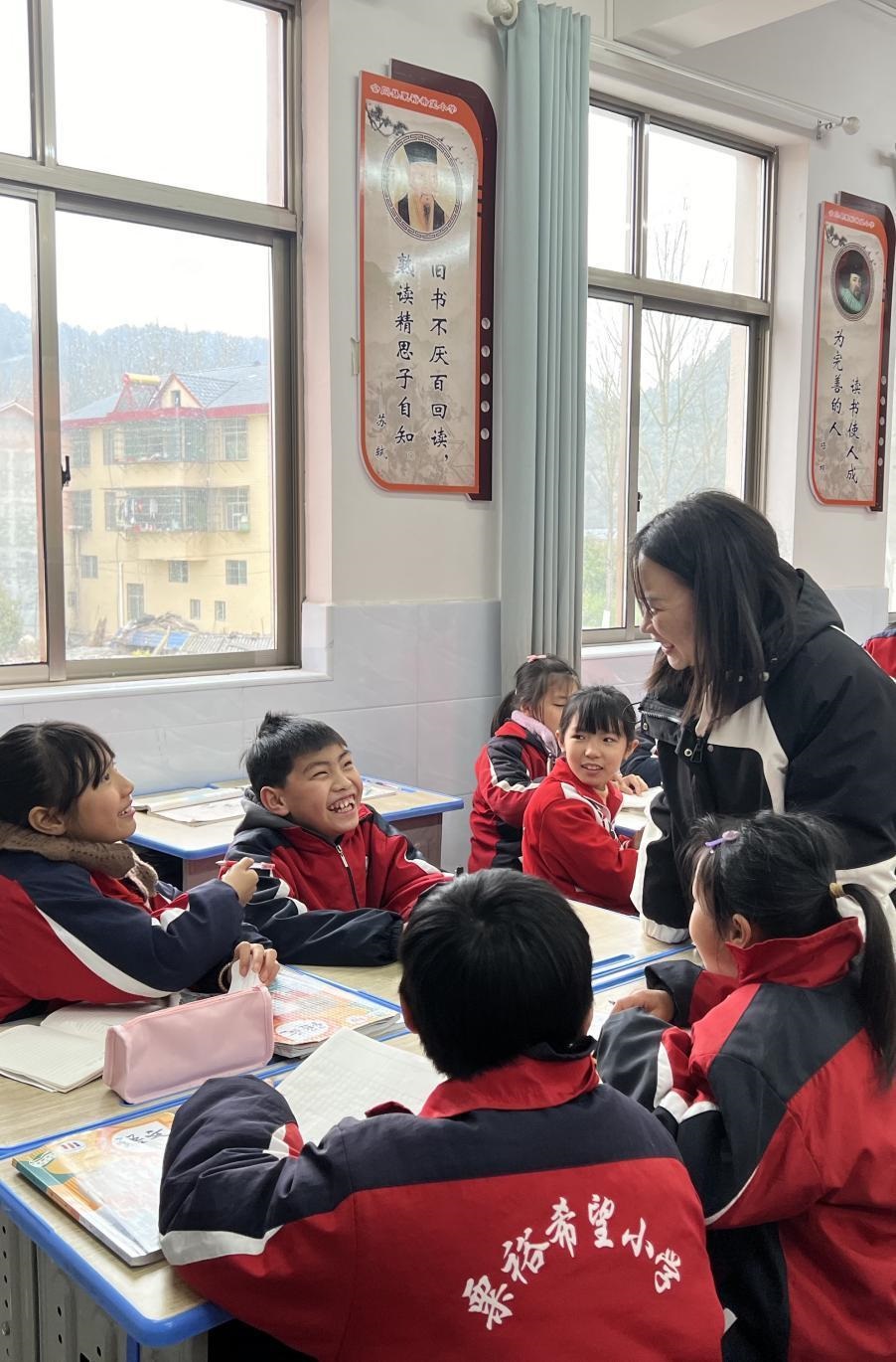 李柏霖不愿意讓孩子們覺得這樣的情緒是生活的全部。她把課堂搬到野外,在“搖搖花”開的時(shí)候帶孩子們?nèi)タ础皳u搖花”,油菜花開時(shí)去看油菜花。花也是詩,家鄉(xiāng)也是詩——若非如此,老師為什么走了又回呢?