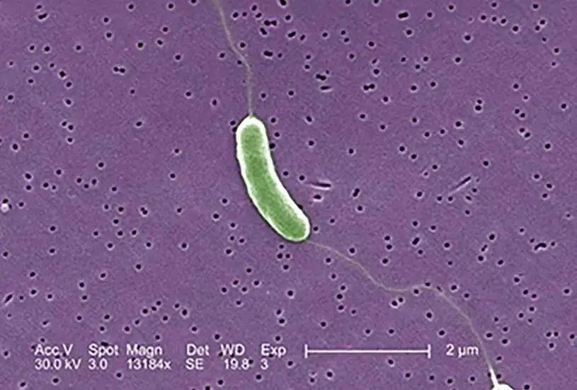 △顯微鏡下的創(chuàng)傷弧菌。(圖源:北京協(xié)和醫(yī)院)