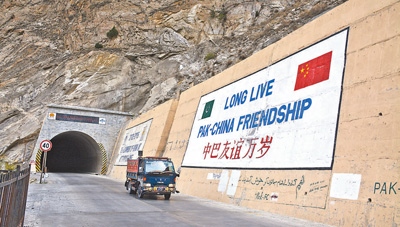 為保障喀喇昆侖公路暢通,巴中兩國工程人員正在進行施工。本報巴基斯坦分社 賽義德·邁赫迪攝