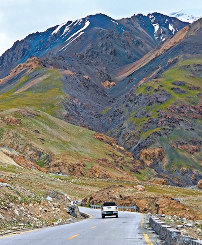 喀喇昆侖公路穿越巍峨險峻的喀喇昆侖山脈,大量路段位于高寒山地,地質(zhì)條件復(fù)雜,修建橋梁和隧道的工程難度大、危險性高。公路沿線有多處巴方設(shè)立的紀念地標(biāo),傳承兩國友誼。圖為一輛汽車行駛在喀喇昆侖公路上。本報巴基斯坦分社 賽義德·邁赫迪攝