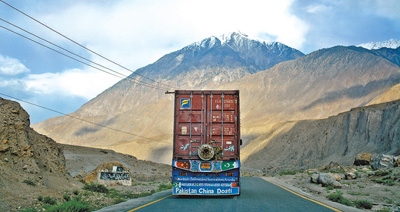 “卡車彩繪”是南亞地區(qū)特有的藝術(shù)形式。圖為一輛尾部帶有彩繪的卡車行駛在喀喇昆侖公路上,這輛卡車彩繪的主題是“巴中友誼”。瓦卡斯·阿赫邁德攝