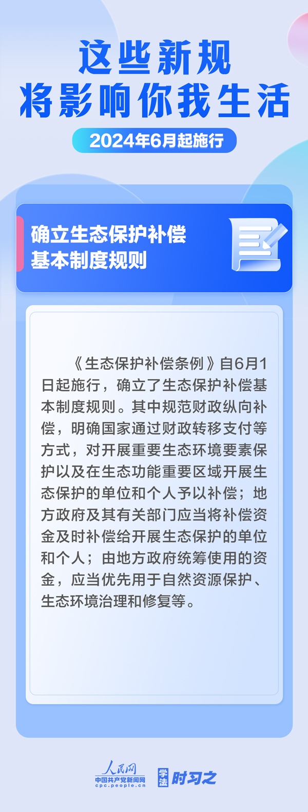 保障糧食有效供給;確立生態(tài)保護補償基本制度規(guī)則;規(guī)范保障海警機構(gòu)依法履職……6月起,這些新規(guī)施行,將影響你我生活。