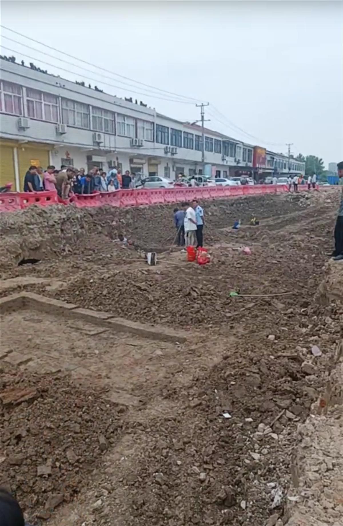 網(wǎng)友發(fā)布的視頻顯示,在壽縣炎劉鎮(zhèn)廣巖衛(wèi)生院附近的一處修路的工地上,施工人員在作業(yè)過程中發(fā)現(xiàn)了一個(gè)古墓群,目前確定有6座古墓。目前,當(dāng)?shù)乜脊殴ぷ髡咭呀?jīng)趕到現(xiàn)場處置,民警對(duì)現(xiàn)場進(jìn)行了管制。視頻中,現(xiàn)場被警戒線圍起,多名群眾在附近圍觀。