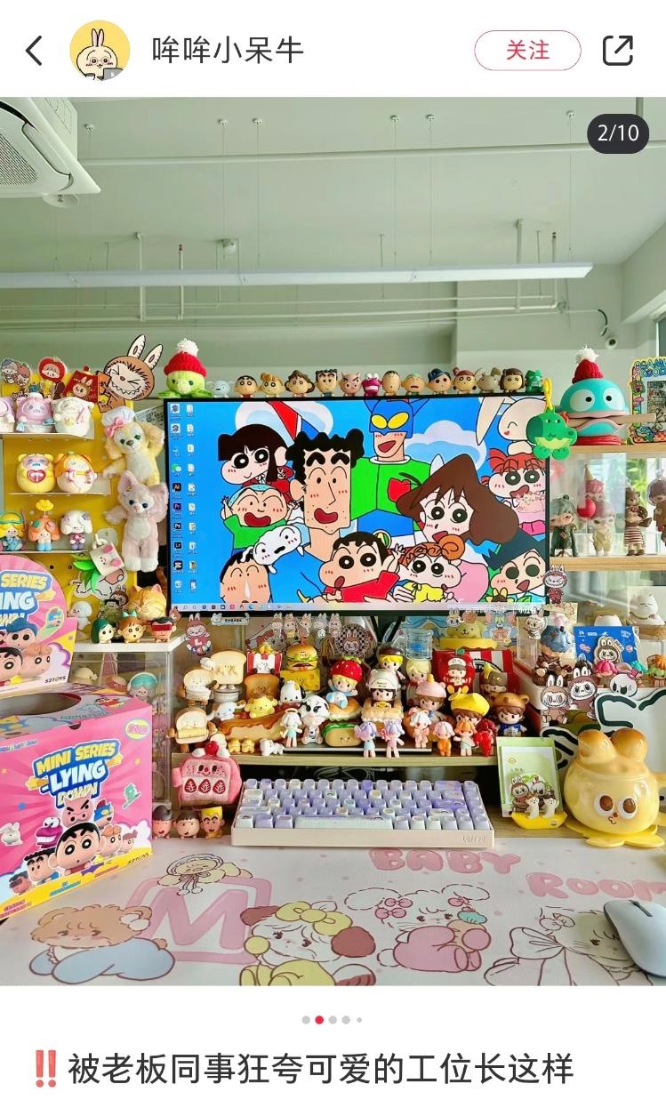 近日,杭州一女生一年內(nèi)花1萬元改造工位引熱議。報(bào)道稱小秦因?yàn)槠綍r(shí)喜歡收集盲盒手辦,所以在工位上也擺滿了潮玩,她回應(yīng)這樣做能提升工作幸福感,“雖然工位是公司的,但快樂是自己的”。隨著很多盲盒的漲價(jià),現(xiàn)在她的工位價(jià)值已經(jīng)超過2萬元。