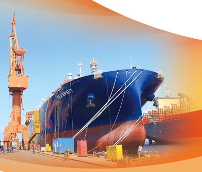 大連船舶重工集團(tuán)正在建造的大型液化天然氣(LNG)運(yùn)輸船。新華社記者 楊 青攝