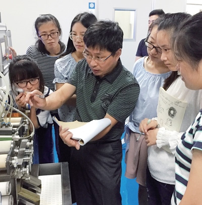 醫(yī)藥學(xué)院學(xué)生在老師的指導(dǎo)下實習(xí)。