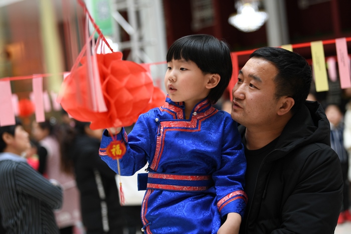 2月17日,市民在內(nèi)蒙古圖書(shū)館猜燈謎。當(dāng)日,為慶祝我國(guó)傳統(tǒng)節(jié)日元宵節(jié),內(nèi)蒙古圖書(shū)館舉行“書(shū)香慶元宵”主題活動(dòng),現(xiàn)場(chǎng)共準(zhǔn)備了蒙漢文燈謎1300余 條,通過(guò) 猜燈 謎、繪花 燈、包元宵等活動(dòng),讓參與者樂(lè)在其中,體驗(yàn)傳統(tǒng)節(jié)日習(xí)俗。