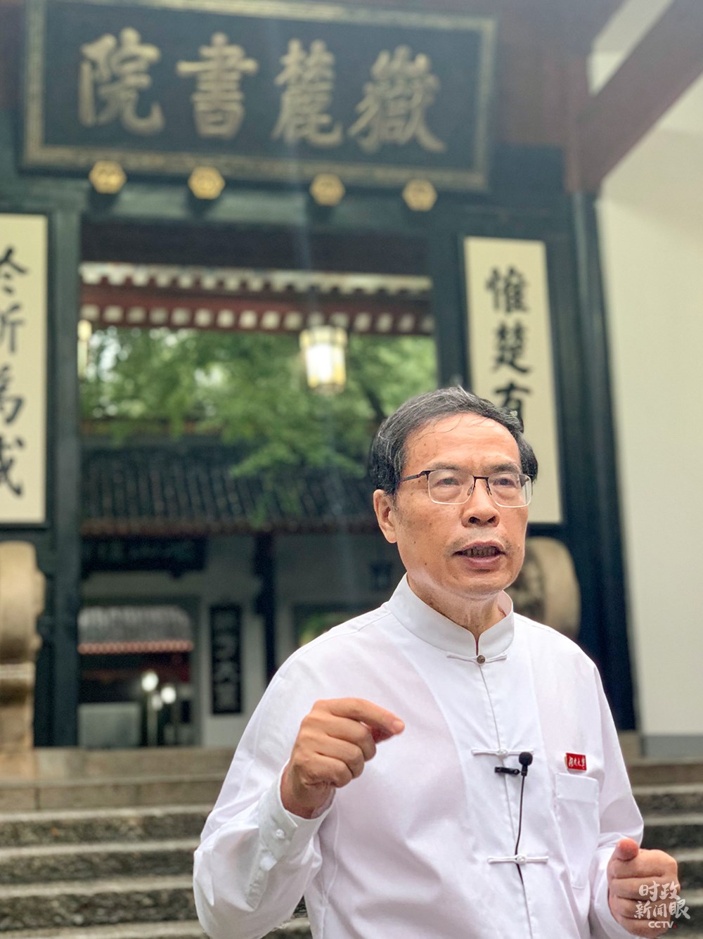 △當(dāng)天給總書記作介紹的是曾任岳麓書院院長20多年的朱漢民教授。(總臺央視記者盧心雨拍攝)
